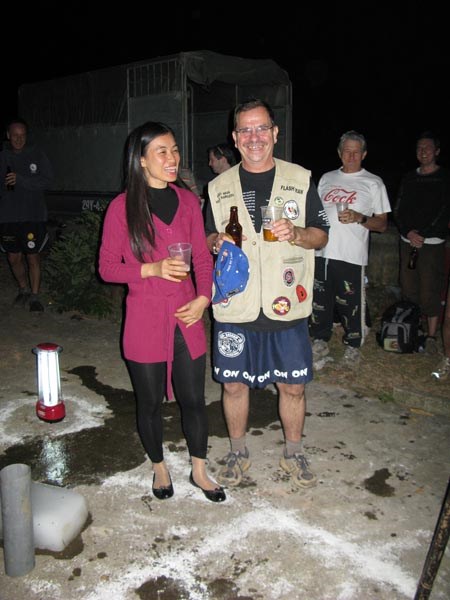 The end of a trail is an opportunity to socialize, have a drink, and observe the traditions of the individual kennel (see Traditions). When the hash officially ends, members may continue socializing at an “on-after”, “on-down”, “on-on-on”, “apres”, or “hash bash”, an event held at a nearby pub, or restaurant, or private home.