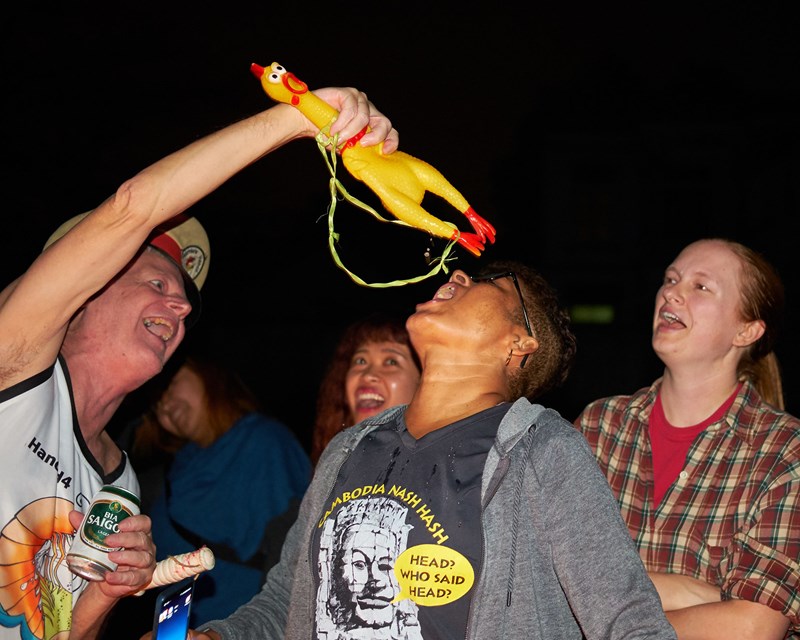 The Hash House Harriers is an international group of non-competitive social running clubs. Enthusiasts refer to themselves as “hashers” and to the activity as “hashing”. Although the parameters that each chapter sets may differ, in general, a hare sets a trail and is followed by the pack. At the run’s conclusion, hashers typically eat, drink, and socialize. The group typically gets together to humourously note on-trail misbehaviour with tongue-in-cheek drinking songs and “down downs”. Socializing
